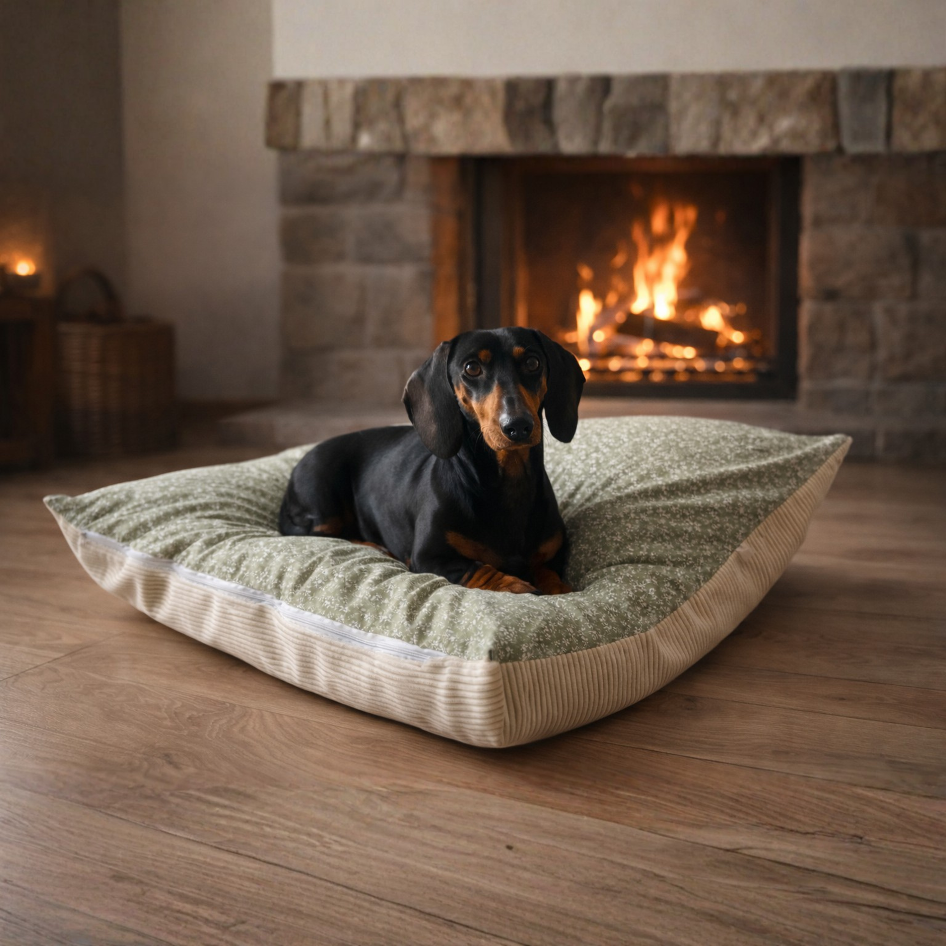 Le coussin Agnès offre à votre chien un espace de repos confortable, rassurant et accueillant. Que ce soit pour une sieste profonde ou un moment de détente après la promenade, il devient rapidement son refuge préféré. Son format généreux permet à votre compagnon de s’allonger, se lover ou s’étirer librement.