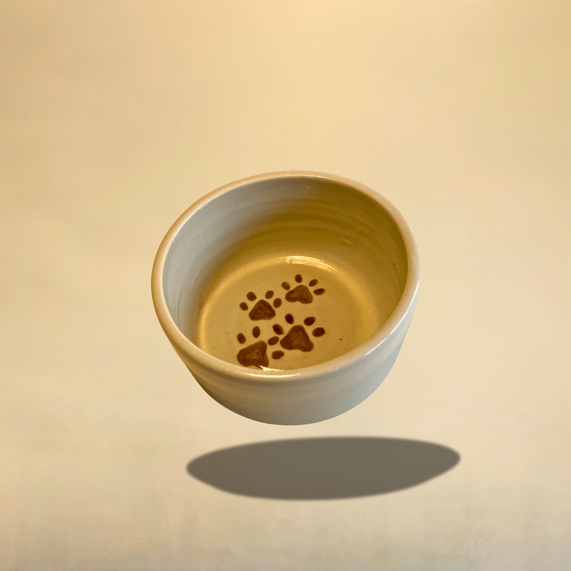 Le motif petites pattes marron et le liseret sur le rebord apportent une touche ludique et élégante, parfaite pour personnaliser votre intérieur. Chaque gamelle étant faite main, de légères variations rendent chaque pièce unique.