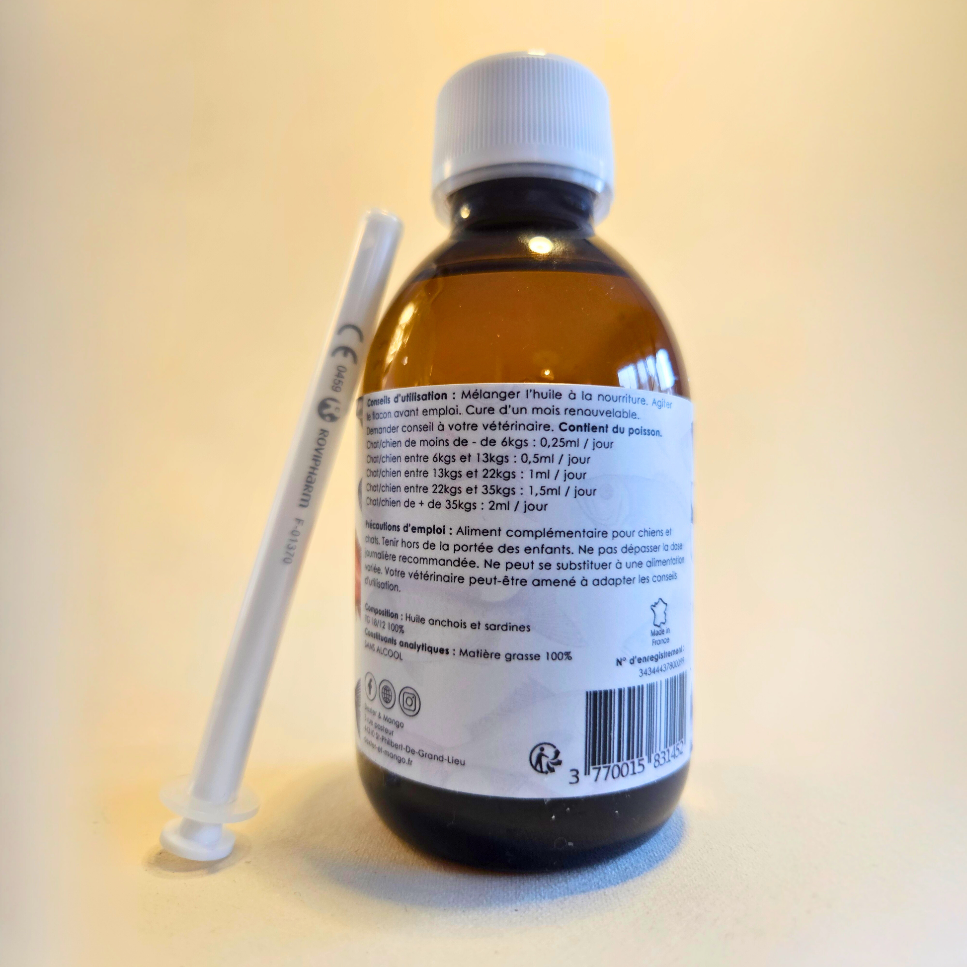 Convient à toutes les races et à tous les âges, cette huile de poisson est un complément alimentaire naturel pour accompagner votre compagnon jour après jour, en toute simplicité.